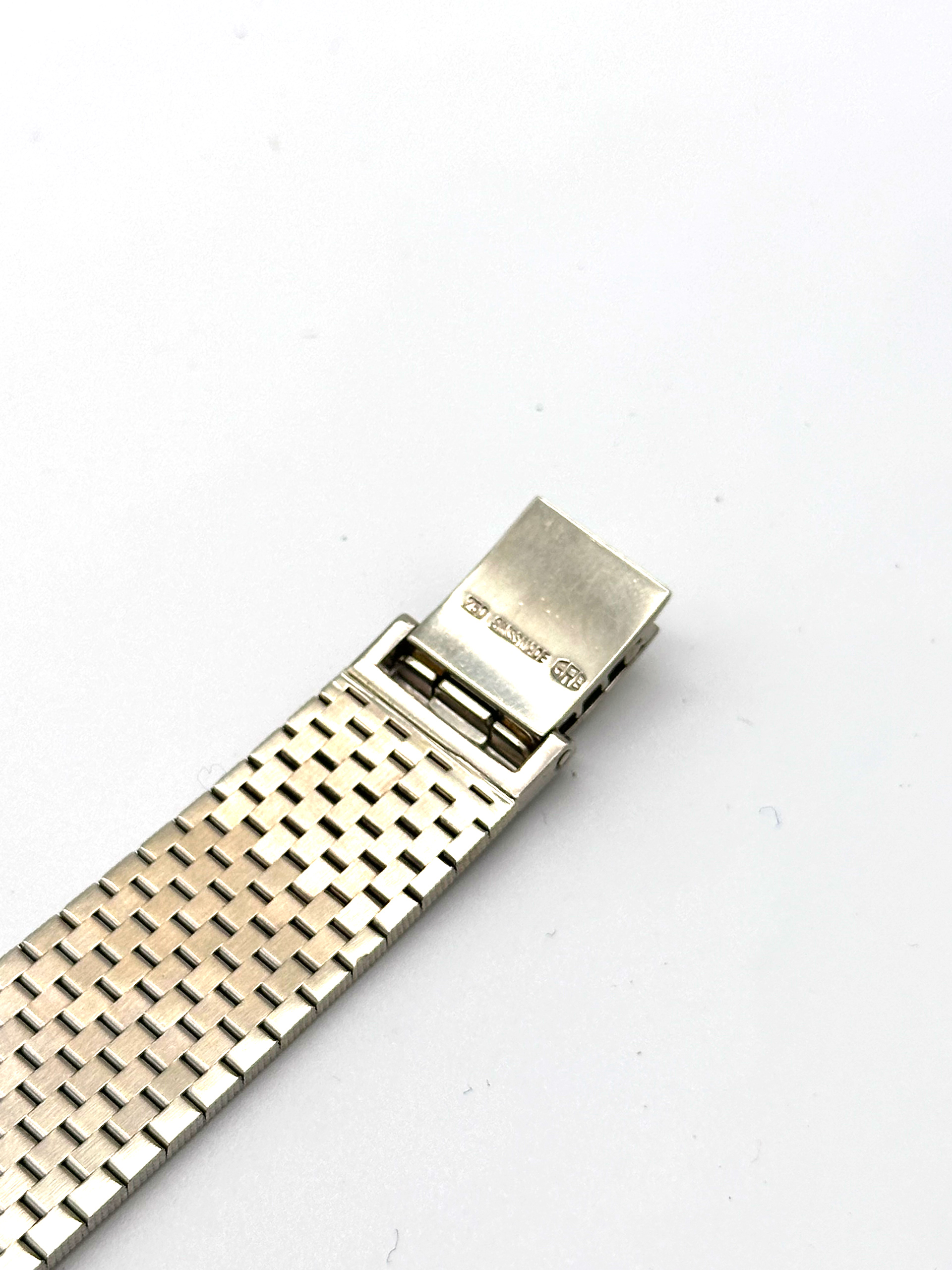 In de sluiting van de band is een stempel te vinden waarop ‘GRG’ staat. Dit is de stempel van Roland-Gilbert Gaschen. Roland-Gilbert Gaschen was een bandenmaker die unieke edelmetalen banden maakte voor merken zoals Audemars Piguet, Breguet en Corum. De banden zijn in verschillende stijlen gemaakt, maar altijd uitgesproken en van zeer hoge kwaliteit. Voor Longines zijn er minder banden gemaakt; er zijn bijna geen van te vinden.