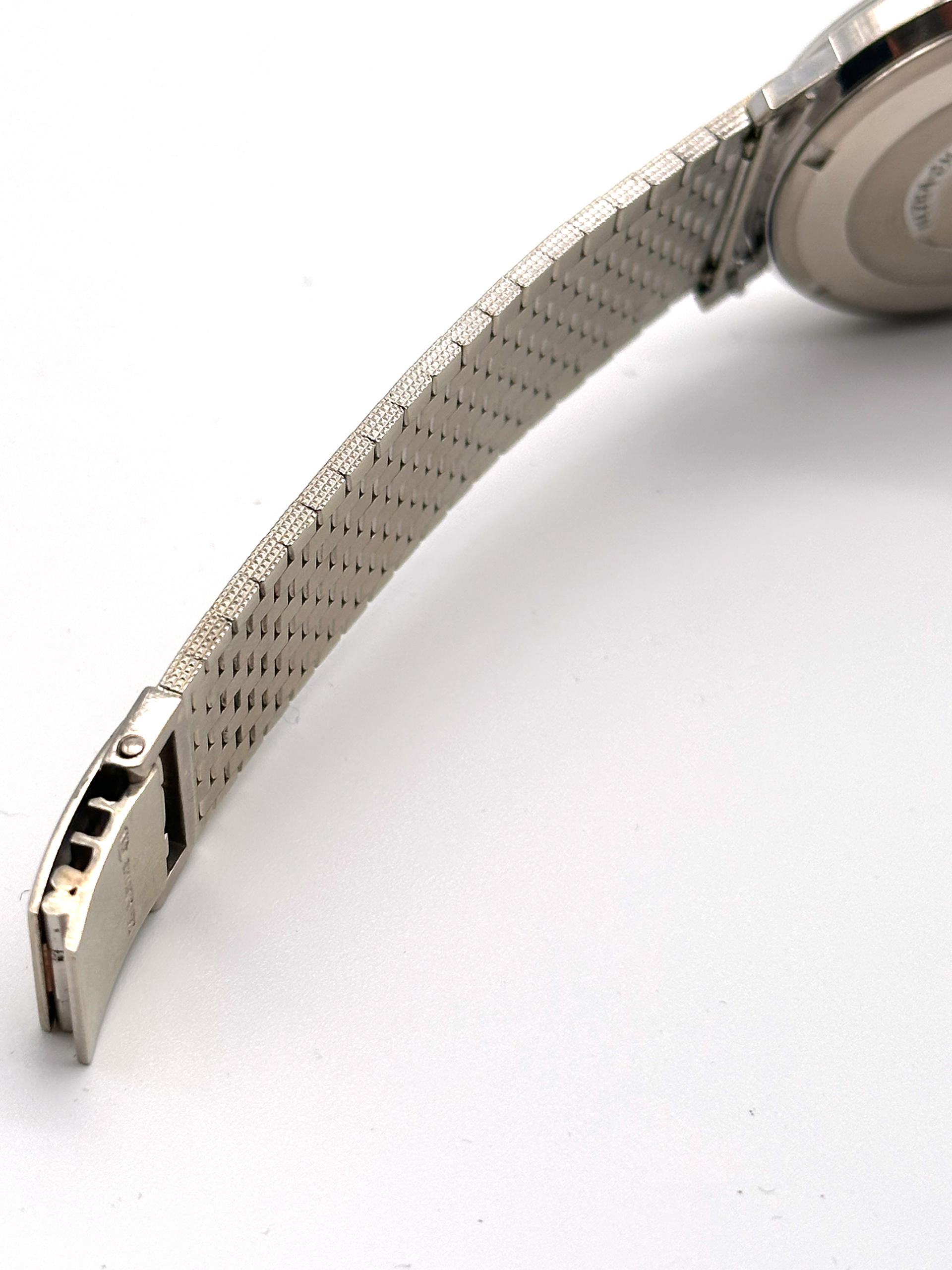 De Clous de Paris-afwerking op de band en wijzerplaat is verfijnd en verkeert in zeer nette staat. Het doorlopende effect van de wijzerplaat in combinatie met de band zorgt voor een prachtig en uniek horloge om de pols. De twaalf briljantgeslepen diamanten op de wijzerplaat maken het geheel af.